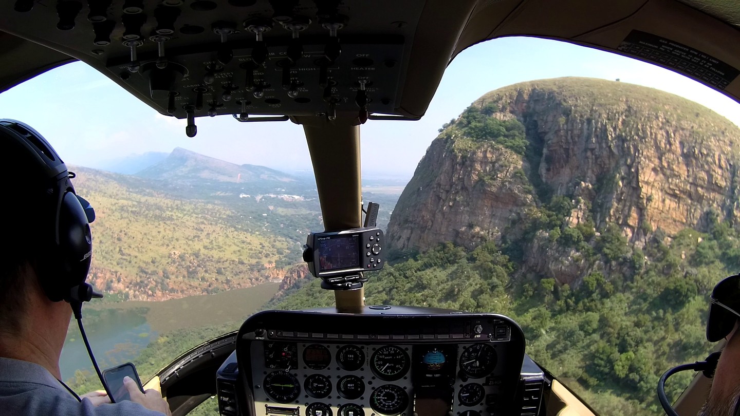 Bell 407 ZS-HJA passing over the Hartbeespoort Dam, Johannesburg, South Africa